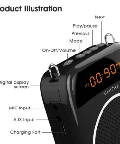 SHIDU 15W Rechargeable Voice Amplifier Portable Wired Microphone FM Radio AUX Audio Recording Bluetooth Speaker For Teacher