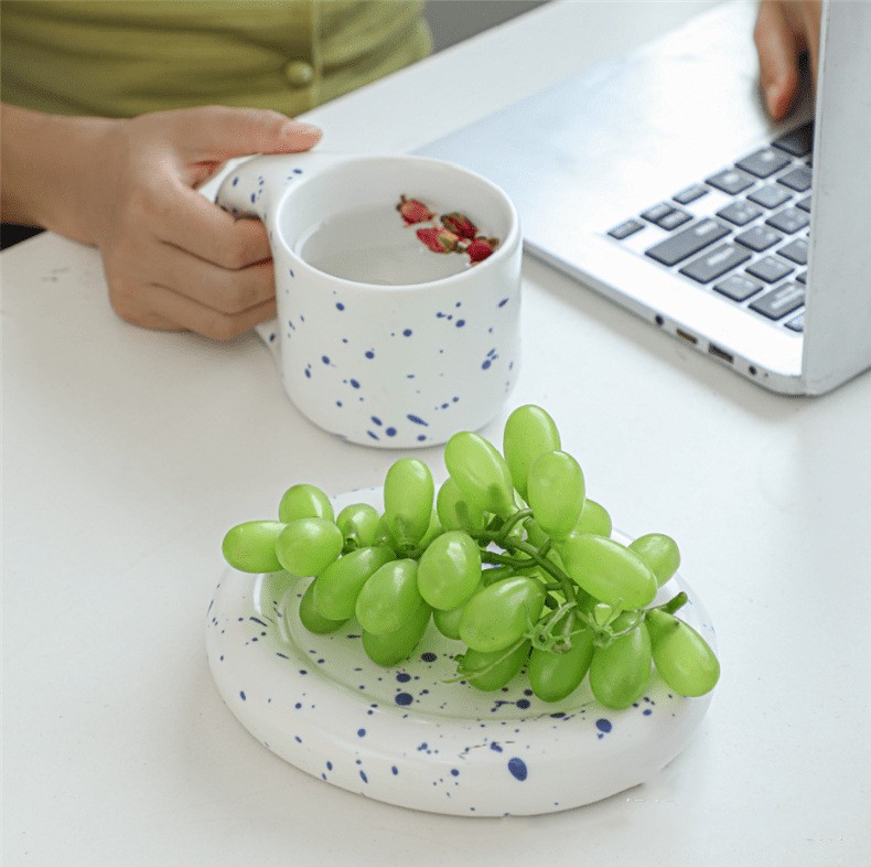 Ceramic Mug Nordic Coffee Cup with Fat Large Handle and Saucer Breakfast Klein Blue Cute Fatty Porcelain Tea Mug