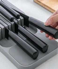 The Cutlery Storage Tray Knife Block Holder is a practical and versatile accessory designed to store and organize kitchen knives and cutlery. This holder typically features a block or tray with designated slots or compartments to securely hold different sizes and types of knives.