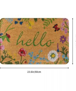• It typically features the word “Hello” in large, bold letters and can be made of various materials such as polyester or coir.