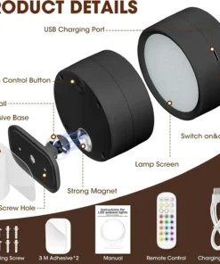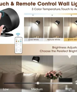 LED Wall Mounted Lights with Remote Wireless Magnetic Wall Sconces 3 Color Dimmable USB Rechargeable for Bedroom Bedside Light