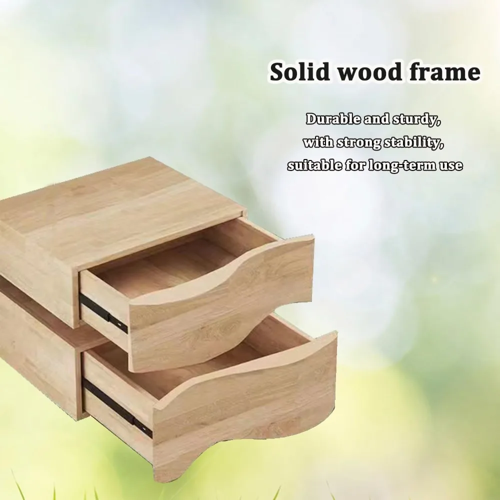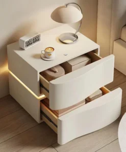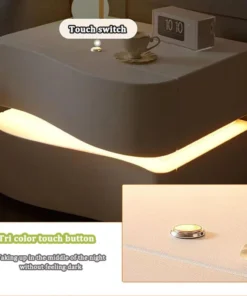 Modern Nightstand with LED Light, Leather Night Stand with Drawer, Solid Wood Bedside Table (2 Drawers, White)