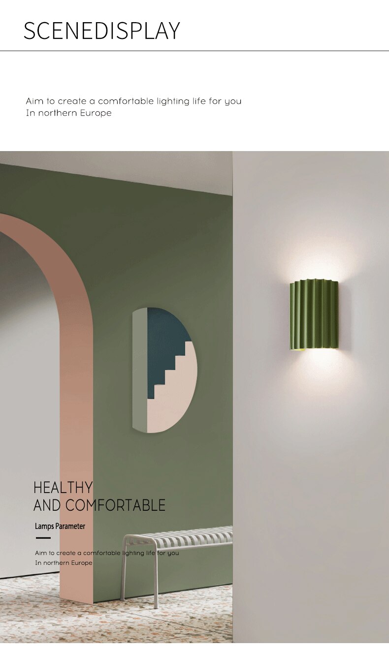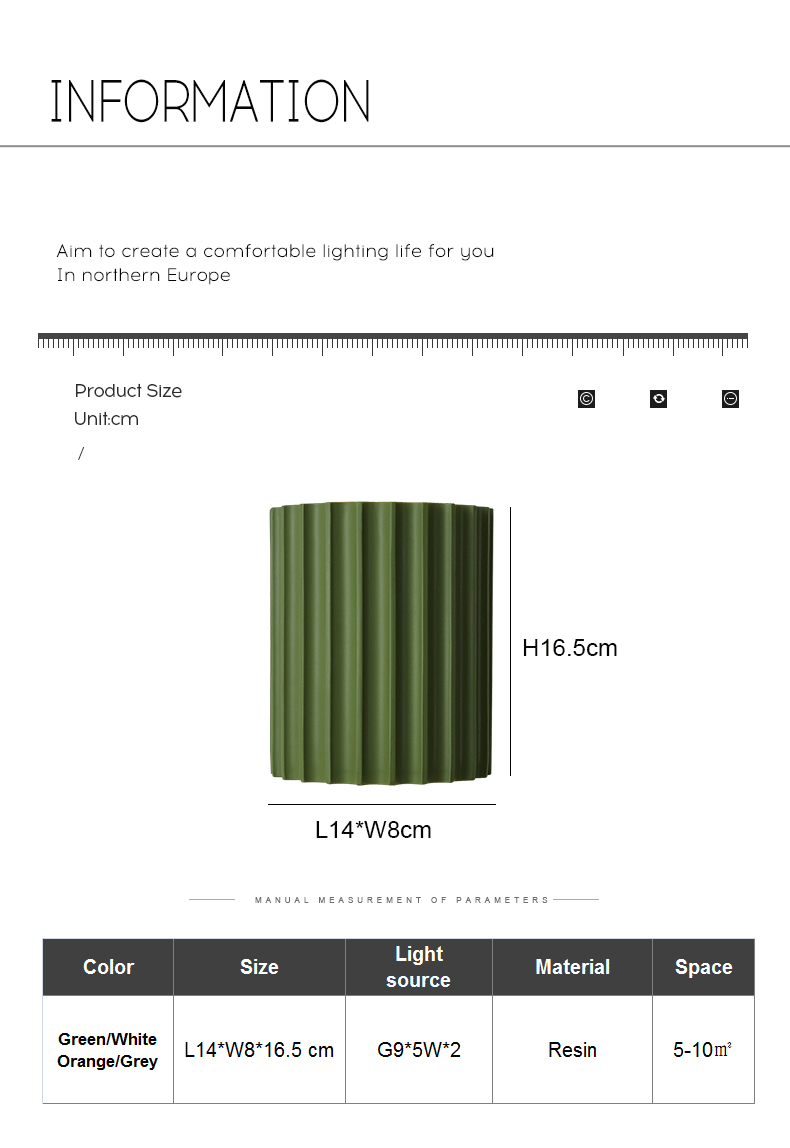 Nordic Green Resin LED Bedside Table Bedroom Art Wall - Image 7