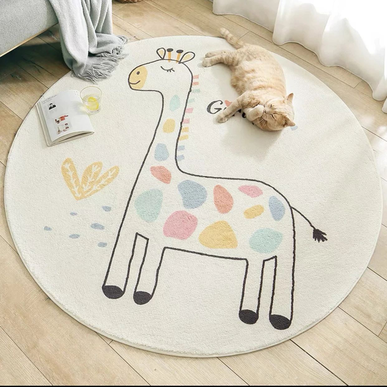 Nordic Round Carpets Giraffe Thick Kids Girl Boy Room Rugs Anti-Slip Mat Bedroom Bedside Children Game Crawling Mat 80CM
