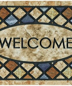 - Its attractive design and bold lettering make it a great addition to any home’s decor. Whether you’re using it to welcome guests to your front door or to protect your floors from mud and debris, this door mat is the perfect choice for your home.
